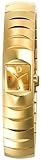 Features: ~Goldtone Case and Bracelet ~Gold Dial ~Water Resistant to 30 Meters ~Sapphire Crystal ~Swiss Quartz Movement ~Push Button Hidden Clasp