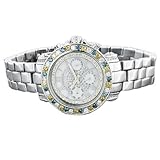 Fantastic Luxurman Watches! This Ladies Color Diamond Watch showcases 2.75 carats of fancy yellow, blue and white diamonds on the bezel. This Luxurman diamond watch features a white face paved in white sparkling stones with three subdials, a silver stainless steel case and a polished silver tone stainless steel band. This Ladies diamond wrist watch by LUXURMAN houses a fine Japan-made quartz movement, and is conveniently water-resistant.