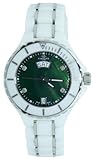 This superb Oniss Women's watch features an attractive high tech white ceramic case of size: 38mm in diameter and 12 mm in thickness. This great watch also features high quality Swiss quartz movement, water resistant up to 50 meters, white ceramic and solid stainless steel unidirectional rotating bezel, scratch resistant mineral crystal, 19mm wide white ceramic and solid stainless steel bracelet, green dial with day-date display, luminous hands and 4 genuine diamond hour markers. Precise Swiss Quartz Movement Hi Tec Ceramic Case and Band, Push Button Butterfly Open Clasp Sapphire Crystal, Day/Date Display, Genuine Diamond Markers, MOP Dial Case Size: 42mm Diameter, 12mm Thickness Water Resistant - 50M, Uni Directional Turning Bezel, Screwed Down Crown