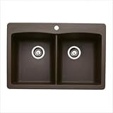 Blanco 440218 Features: -Double bowl. -Diamond collection. -Cafe brown . -Drop-in and undermount installation. -Classic equal double bowl design. -80% rock hard granite. -Color all the way through. -Highly resistant to scratching, staining and all household acids and alkali solutions. -Non-porous, easy to clean. -Heat resistant to 536° F. -Extremely hygienic, does not absorb odors or bacteria. -Limited lifetime warranty. -Drain diameter : 3.5". -Left bowl : 9.5" H x 14.5" W x 17" D. -Right bowl : 9.5" H x 14.5" W x 17" D. -Overall dimensions : 9.5" H x 33" W x 22" D. For more information on this product please view sheet(s) below: Product Dimensions: Includes: Style / Application: Manufacturer Part Number: Finish: