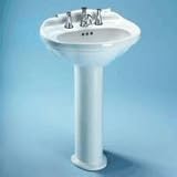 TOTO Whitney Pedestal Lavatory sink with Faucet Holes on 8 Inch Centers, Colonial White (SINK ONLY) LT754.811 Traditional pedestal lavatory with elegant styling ; 25 Inch x 19 Inch Part of the Whitney Suite which includes a matching toilet and lavatory ; The pedestal leg, PT754-11 (SOLD SEPARATELY) is 34" high, which is Universal Height for comfortable use ; Deep generous basin ; Rear overflow ; Five Year Limited Warranty.