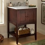 Allure 24" Bathroom Vanity Cabinet with Open Display Shelf Give your bath a fresh and unique look with the Allure Vanity Collection by Sagehill Designs. Rich finish details, arched cross-rails, and tapered legs, are quality design elements that invite compliments and rise above the ever-changing fashion trends. Functional elements such as adjustable levelers, ample storage shelf and hidden interior storage make this vanity and mirror combination reflect your substance and style. The matching standard portrait mirror features a delightful crown molding and functional accessory shelf to hold small items. Both vanity and mirror are constructed of select hardwood solids and veneers and will allow for years of carefree service. The Allure Vanity Collection from Sagehill Designs is styled to fit your bath environment and your modern lifestyle. Product Features: Overall Dimensions: 24"W x 21"D x 34"H Constructed of Maple hardwoods Maple wood veneers (real wood) 2 door, casual, clean and crisp design Scaled and proportioned for today s smaller bath environment. Multi-step hand rubbed finish brings out the depth and beauty of the wood. Inset doors exhibit quality construction and attention to detail. Finished cabinet interior Ample storage and display space on lower shelf. Legs feature tapered feet and adjustable levelers for ease of installation. Matching wood knobs (cabinet hardware) Crated and shipped assembled
