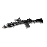 A heavy-duty gun with excellent performance at a low price. Includes a tactical rail system on the top and front sides for accessories. Fires at an amazing 360-380 FPS with .12g BBs and 280-300 FPS with .20g BBs. We recommend using .20g BBs for best accuracy. This is a spring gun and has to be cocked for each shot. It's fast, clean, inexpensive and easily maintained. Requires no gas or batteries.... Features: - 37-round magazine - Removable tactical rail system - Functional safety unit - Adjustable Hop Up - Adjustable rear sight... M116 spring rifle with tactical aim sight & flash light (Short Version of TSD Sports M14 Spring Sniper Rifle) 50-yd effective range Spring-powered Must be cocked for each shot Length: 36 inches Weight: 6.8bs... caliber: 6mm velocity: 300.00 ft/sec Warranty: 30 Day Limited Warranty with aim sight & flash light